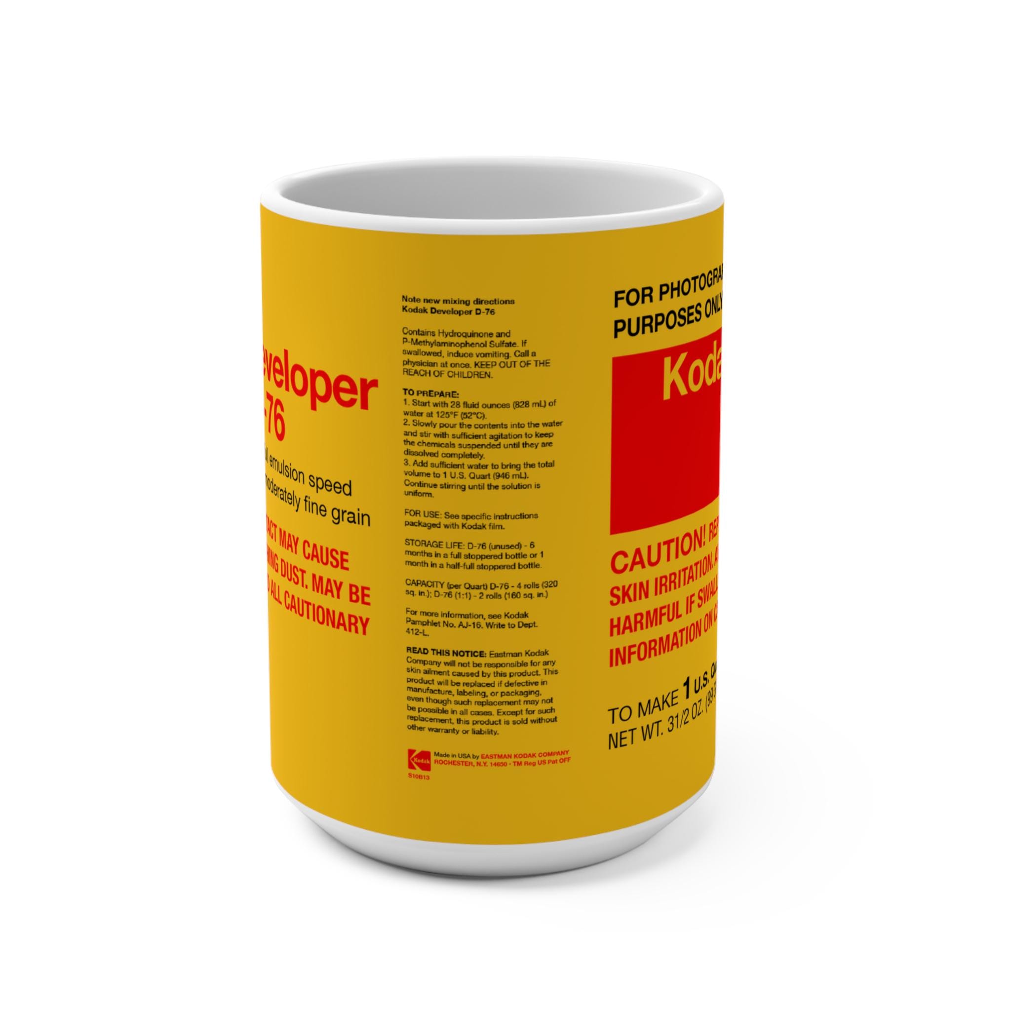 15oz Kodak D-76 Film Developer Label Mug | Vintage Photography Graphics
